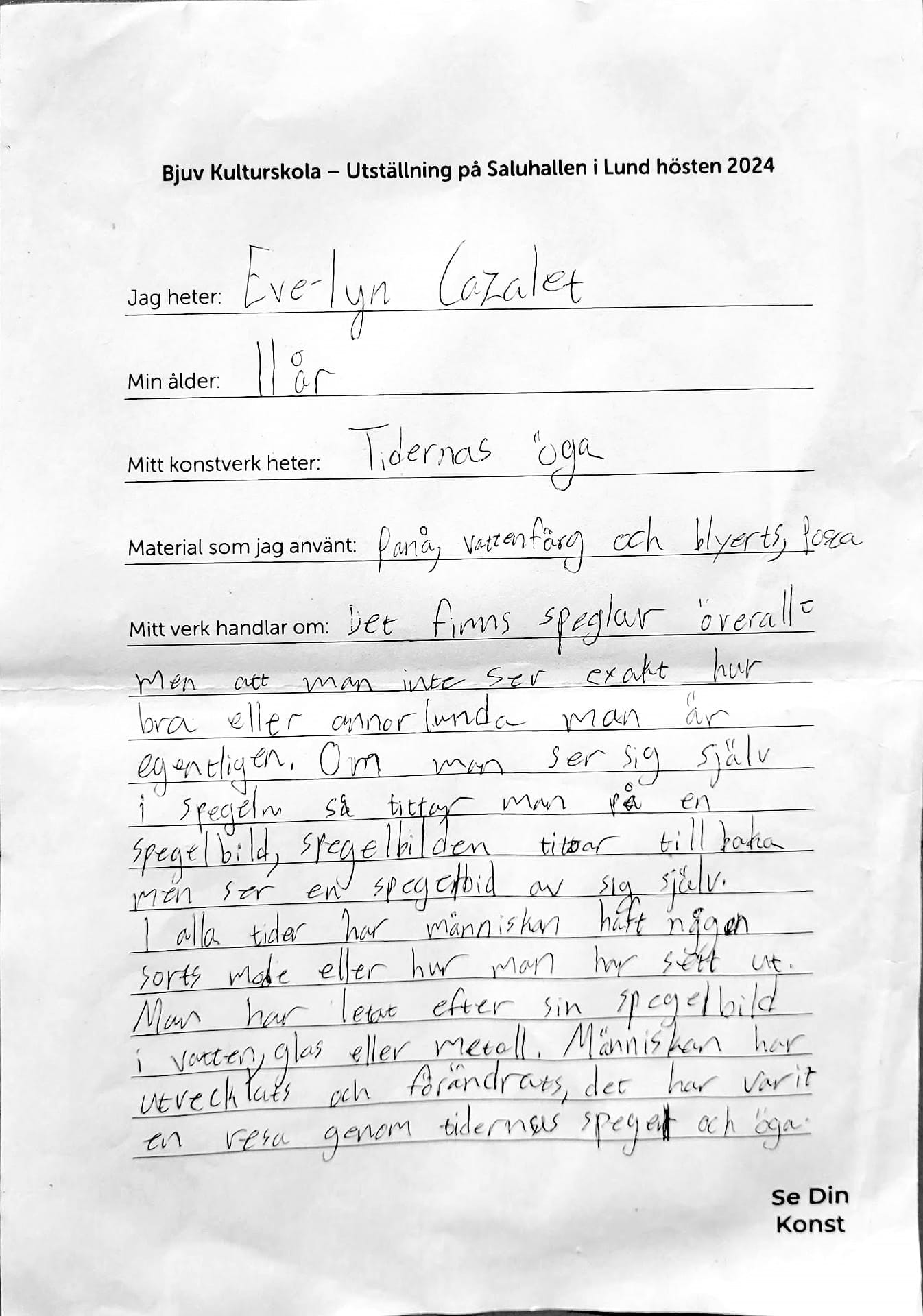 2023, under utställningsperioden i Hässleholms Kulturhus, skapade konstnären Nelly Nilsson Nyberg en imponerande skulptur tillsammans med flera hundra barn som då deltog i projektet Se Din Konst. Barnen blev erbjudna en workshop med Nelly och kolla – nu är allas blickar på Se Din Konst!