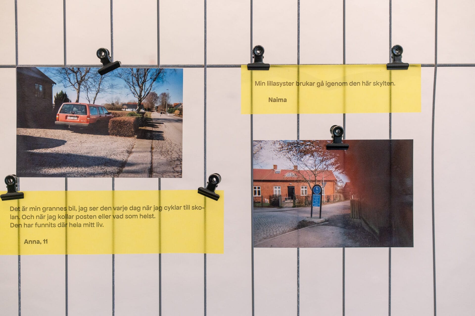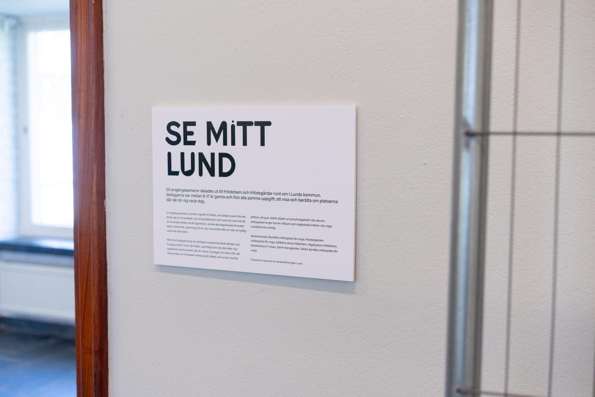 Med stort engagemang har deltagarna dokumenterat detaljer och trygga punkter i sina närmiljöer, samtidigt som de sökt efter nya upptäckter på de platser där de vistas dagligen. En häst mitt i ett villaområde, en intressant vinkel på ett staket, två hundar utanför affären, ett gult, okänt objekt, en porslinsigelkott i ett uterum. Deras iakttagelser ger oss en stillsam och dagbokslik inblick i de unga Lundabornas vardag.